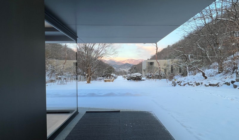 오후에는 하부 띠창으로 들어온 동남쯕의 따뜻한 볕이 피아노 발아래 들어온다. 이 하부 띠창으로 봄 여름에는 이끼가 들어오고 가을에는 낙엽이, 겨울인 지금은 눈이 들어온다. 오후에는 피아노 다리아래로 햇빛이 들어오다 공연의 흐름에 따라 길어지다 사라진다. 이 창들과 빛들은 단순한 구조의 공간을 풍부하게 만들어준다. 그랜드 피아노와 궁합이 잘 맞는다. 눈 바람 낙엽 빛을 느끼는 효과를 주고 피아니스트에게 몰리는 관객에게 시선에 여유를 준다.