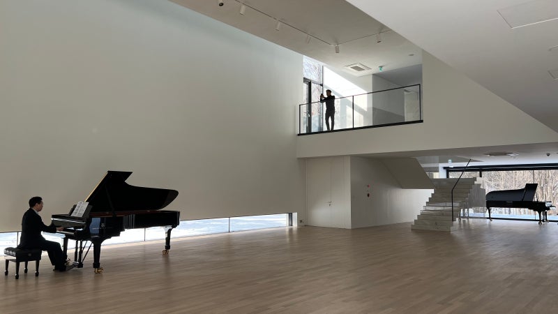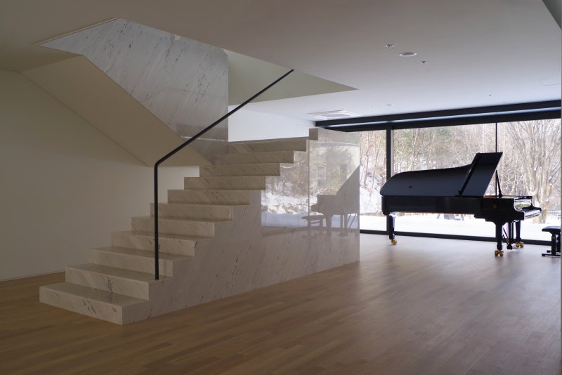 건축의 구조는 북동측 입구늘 캔틸레버로 들어올리고 그랜드 피아노의 배경이 되는 남서측 벽면을 강조했다. 상부에 북서측으로 열린 천창을 두어 아침 빛처럼 들어오게 만들었고 벽면 하부에는 그랜드 피아노 다리 높이보다 낮은 수평 띠창을 만들었다.